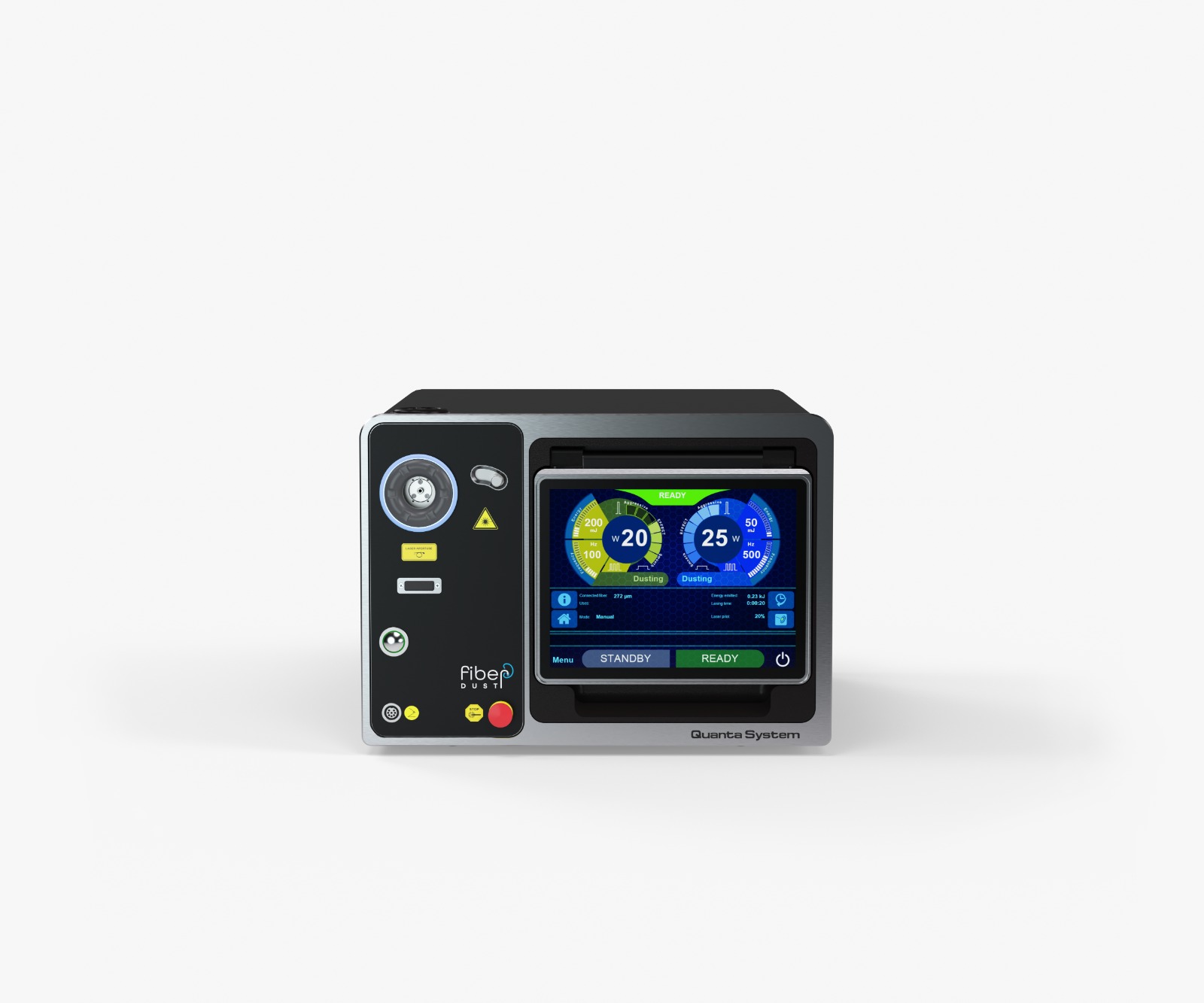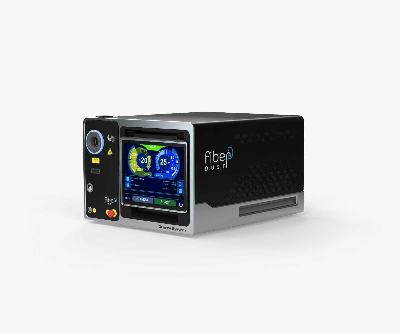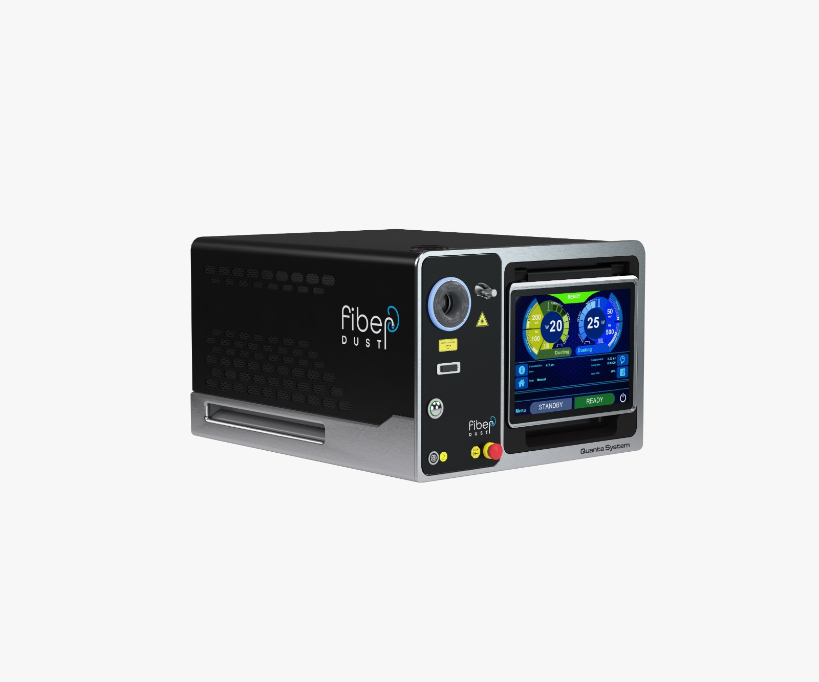 Fiber Dust® lazer sistemi, hem Litotripsi hem de hassas yumuşak doku cerrahisi için tasarlanmış bir Thulium Fiber Lazer'dir (TFL). Bu cihaz 1,9 µm dalga boyu lazer emisyonuna sahiptir ve taş parçalanmasına ve ablasyonuna izin veren süper darbeli moda sahiptir. Son yıllarda, TFL teknolojisi özellikle taşların tedavisi için Holmium lazere yeni bir alternatif olarak ortaya çıktı. Bu yeni cerrahi lazer cihazının piyasaya sürülmesiyle Quanta System, zaten geniş olan lazer portföyünü tamamlayarak cerrahlara tam bir cerrahi ekipman seçeneği sunuyor. TFL'nin tepe gücü, son derece sınırlı geri itme sağlarken, nazik taş tozlaması ve küçük parçacıkların oluşturulmasını sağlar. Gerçekten de, TFL teknolojisi şimdiye kadar özellikle düşük-orta sertlikteki taşlar için mükemmel bir tozlama aracı olduğunu kanıtladı. Geniş frekans aralığı (2500 Hz'e kadar), istediğiniz darbe enerjisi ve darbe süresi kombinasyonunu bulduğunuzda tedaviyi hızlandırmanızı sağlar. Fiber Dust ayrıca 200 µm çekirdek fiberle tam performans sağlar ve gerektiğinde çıkış artışı için alan bırakır. Ek olarak, 150µm fiber daha da fazla esneklik ve sulama akışı sağlar. Kompakt masaüstü tasarımı, ameliyathanede konumlandırılmasını ve saklanmasını basitleştirir ve farklı hastaneler ve koğuşlar arasında taşınması için de uygun hale getirir.